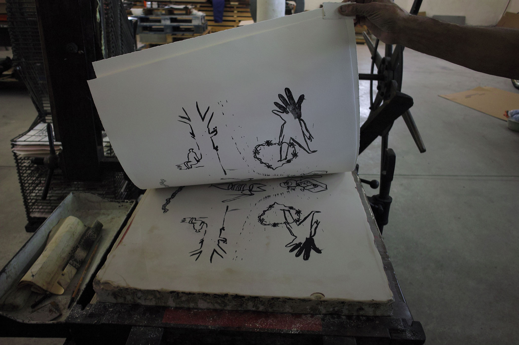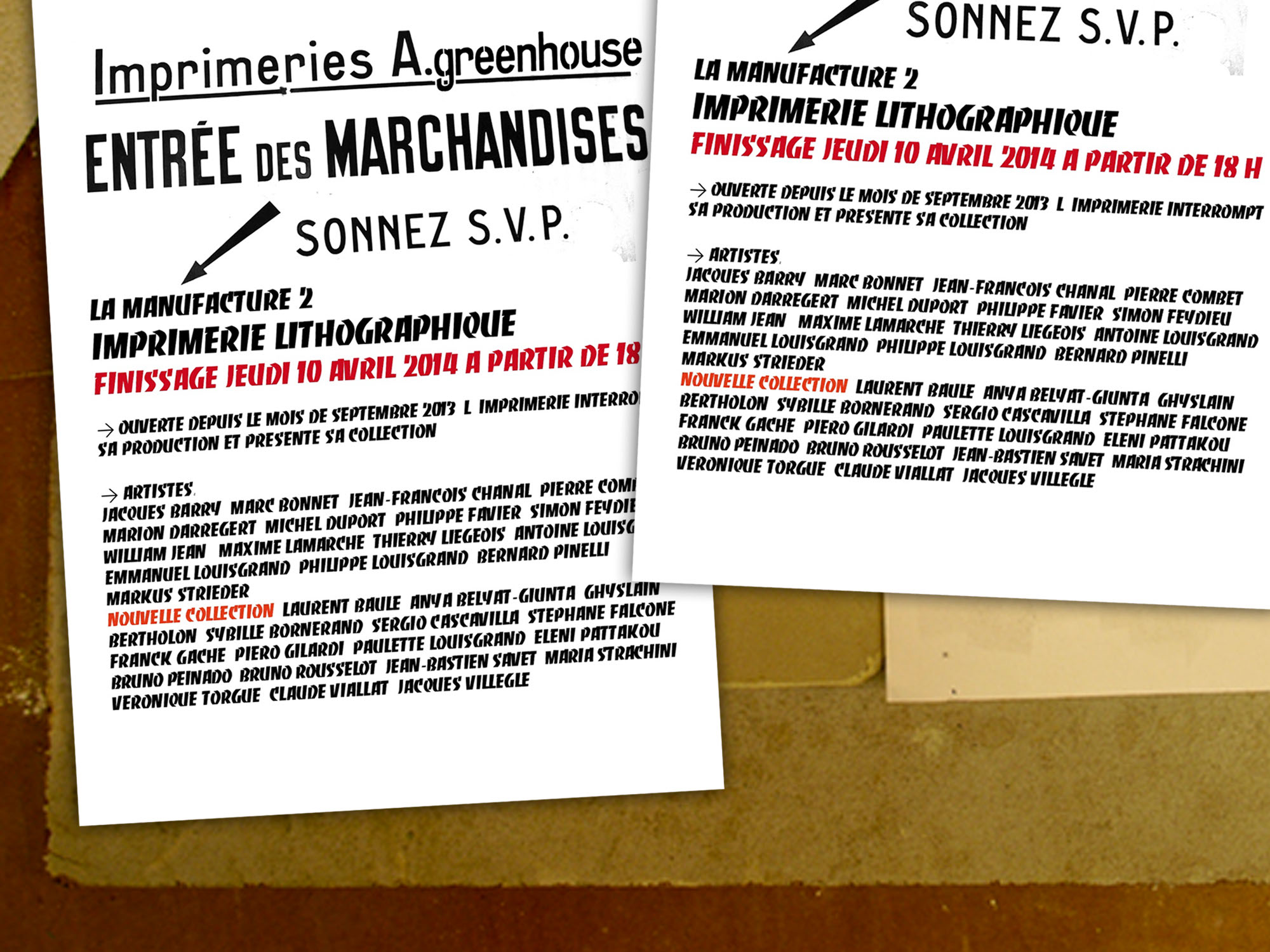 De septembre 2013 à avril 2014, l’association GREENHOUSE a transformé ses locaux en une imprimerie éphémère. De nombreux artistes se sont retrouvés pour produire des estampes : lithographie, linogravure, bois gravés, typo, etc.. l'outil de travail était à leur disposition : presses, papier, encre, ressources et savoir faire... Au fil des semaines, une collection d'oeuvres s'est constituée, exposée en AVRIL 2014 à Saint-Etienne, puis à Paris chez FRENCHTOUCHFISHING en JUIN 2014.